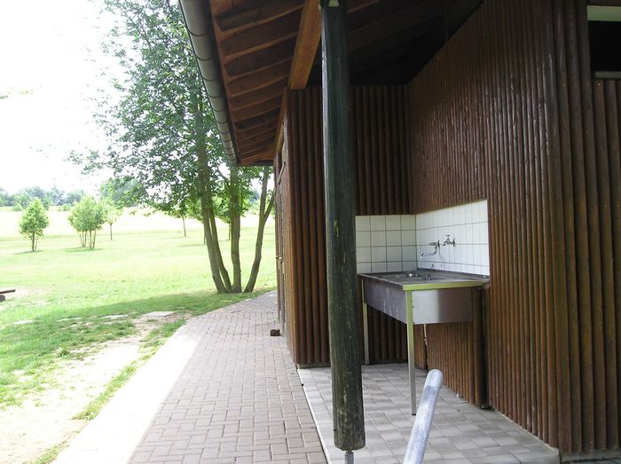 Das Sanitärgebäude ist mit Duschen (Kalt- und Warmwasser), Waschräumen sowie einem rollstuhlgerechten WC ausgestattet. Einen zusätzlichen Reiz bietet die Nähe zum modernisierten Spessartbad.
